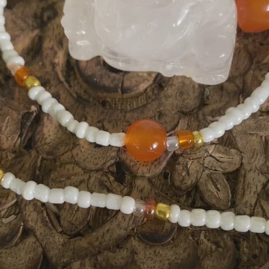 This white and orange waist beads is adorned with authentic carnelian crystal beads.